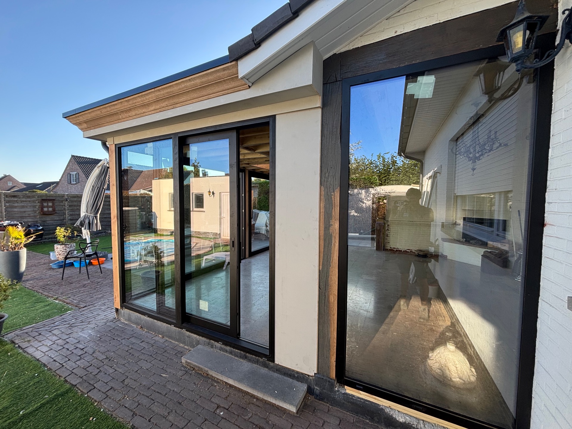 Wij plaatsen ramen en deuren in hout, pvc en aluminium, steeds met hoogwaardige profielen van merken zoals Schüco en Reynaers.