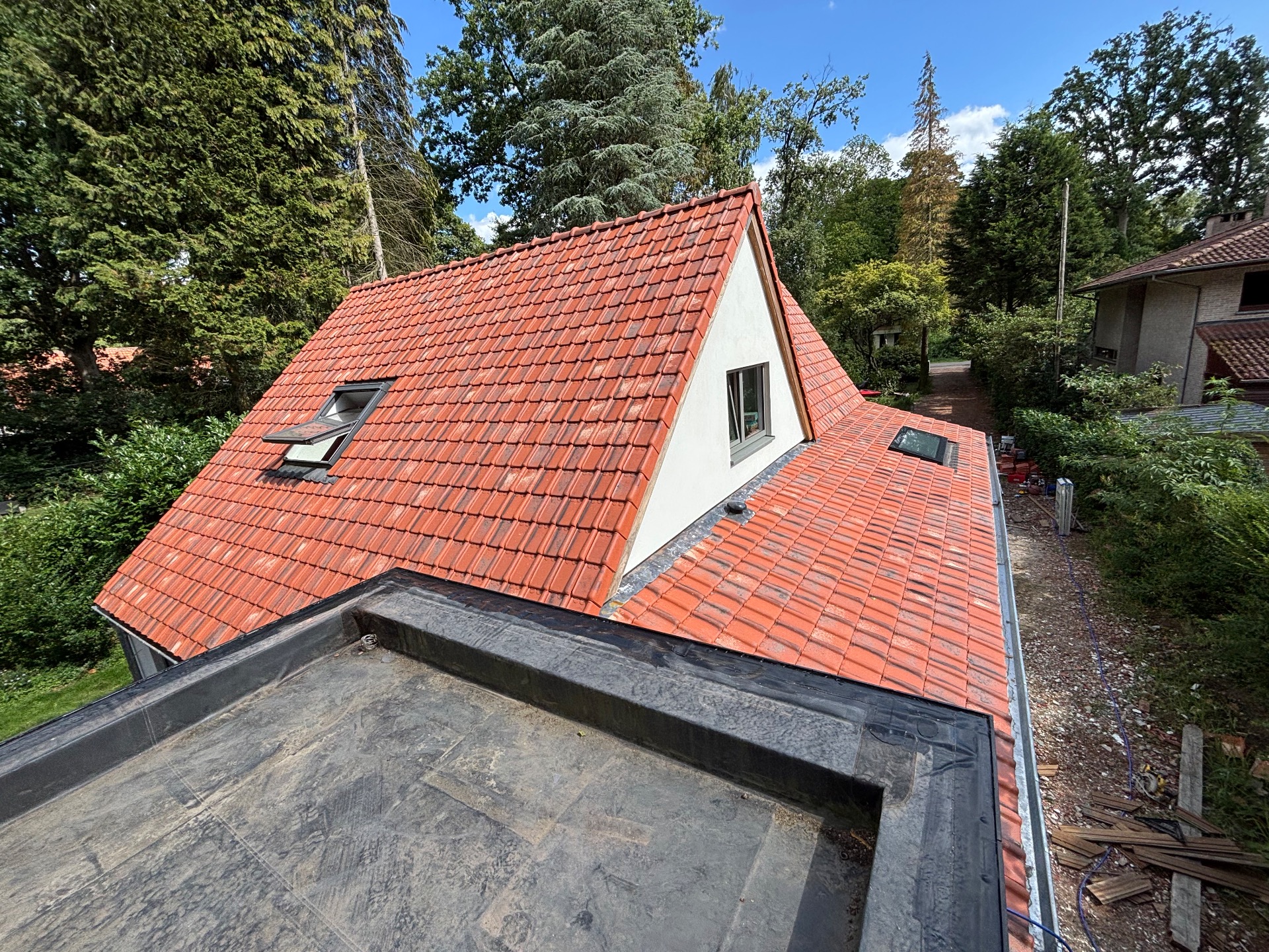 Voor hellende daken bieden we verschillende mogelijkheden in dakbedekking, zoals dakpannen, leien of metalen daken, steeds geplaatst met oog voor detail en duurzaamheid.
